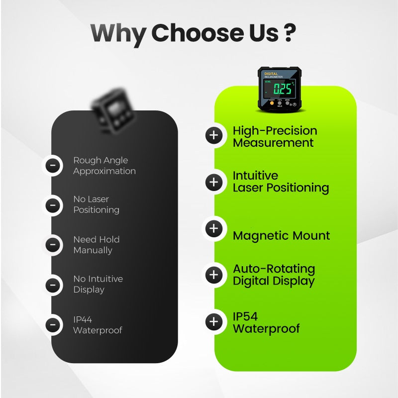 PRECISE MEASUREMENT AND LASER COMPATIBLE: Delivers highly accurate angle readings and can be used with a laser level for professional alignment in carpentry, construction, or machinery.