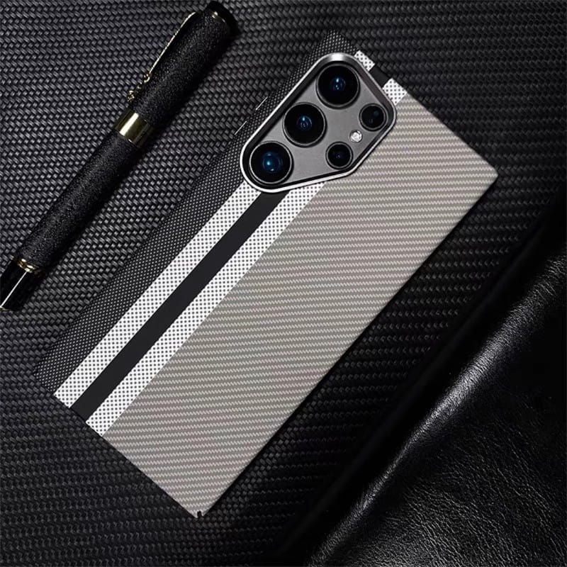 Ultra Slim Carbon Fibre & Metal Button Case Cover for Samsung S Series