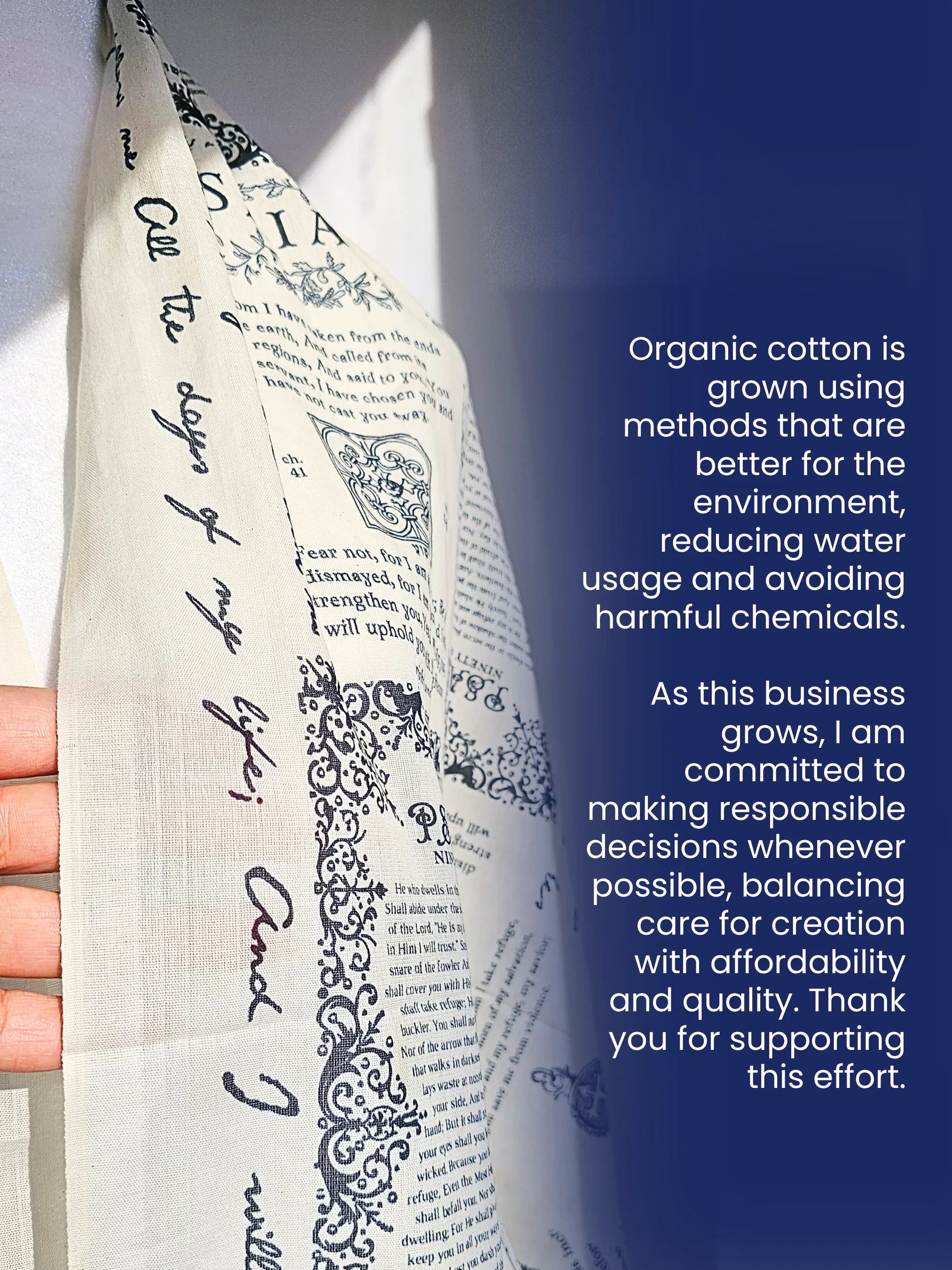 This scarf made with Polyester + cotton linen fabric, drapes well and stays put, ideal for those seeking a tangible connection to the Word during their daily devotion or offering a comforting presence on any journey.