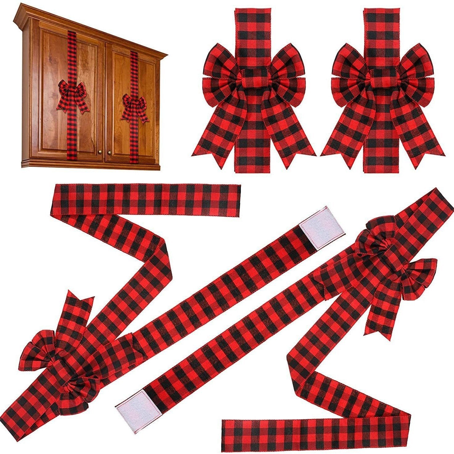 🎀 Red Christmas Cabinet Ribbon Bows – Large Red Bows for Door, Kitchen & Locker Decor 🎄