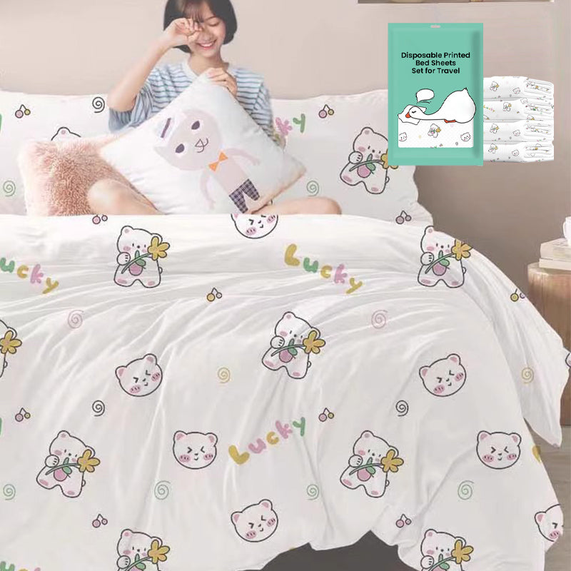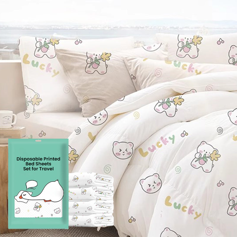 Package Include: 1* Disposable Printed Bed Sheets Set for Travel
