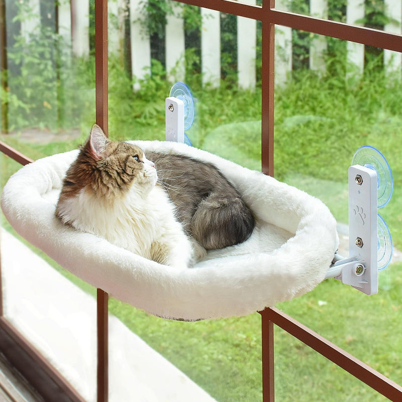 SPACE-SAVING FOLDABLE DESIGN - This window perch mounts off the floor and folds up easily, and the suction-cup arms are detachable for quick removal when needed, letting you close your blinds or curtains without full disassembly.