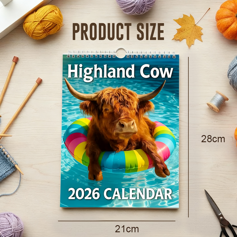 CHARMING HIGHLAND COW ILLUSTRATIONS - Each month reveals a new, delightful portrait of a Highland cow, bringing a dose of rustic charm and cheerful personality to your space and making every day a little brighter.
