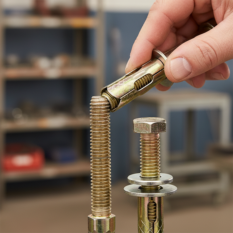EXPANSION SLEEVE MECHANISM - Utilizes a powerful expansion mechanism that creates an immense frictional grip within the base material upon tightening, delivering exceptional pull-out resistance for secure anchoring in concrete, brick, and stone.