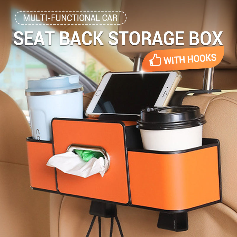 Multi-Functional Car Seat Back Storage Box with Hooks