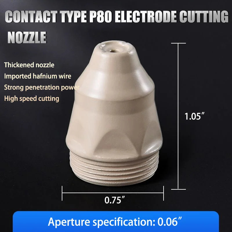 APPLICABLE OBJECTS: The P80 electrode nozzle is used in air plasma cutting machines and can cut medium and thin metal plates.