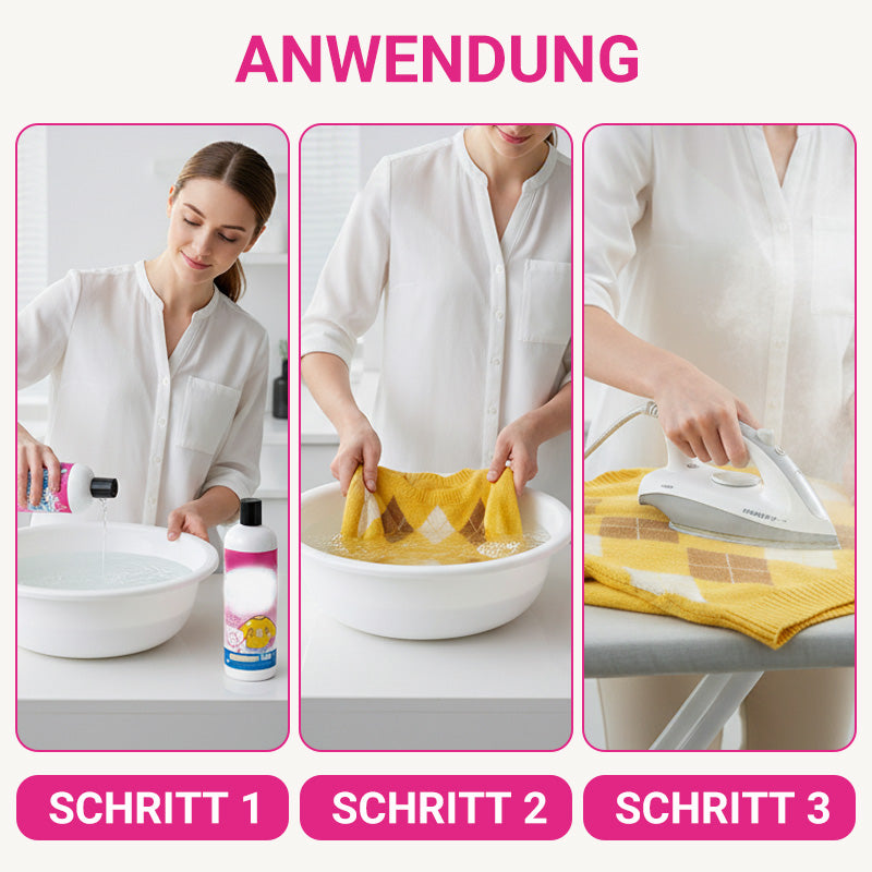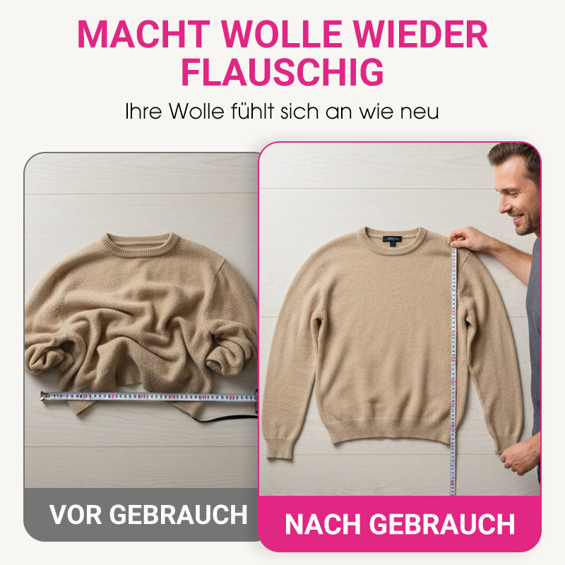 ANTI-SHRINKAGE FORMULA: Revives shrunken wool and cashmere clothing, loosens the fibers and helps them regain their original size and shape – saving your favorite sweaters after a laundry mishap.