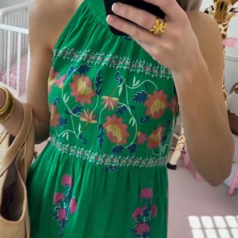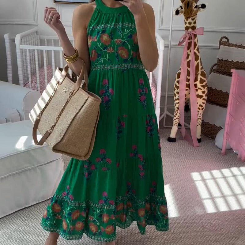 EFFORTLESS STYLE: This printed maxi dress combines casual elegance with versatile wearability. The contemporary halter neckline and flowing silhouette create a flattering feminine look perfect for brunches beach days or evening outings. Transition seamlessly from day to night with this wardrobe essential.