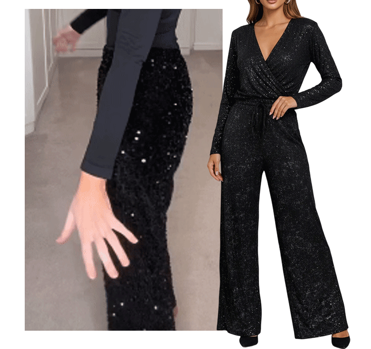 📢📢50 % OFF !!🎅Women's Sequin Sparkle Wide Leg Pants with Elastic Waistband
