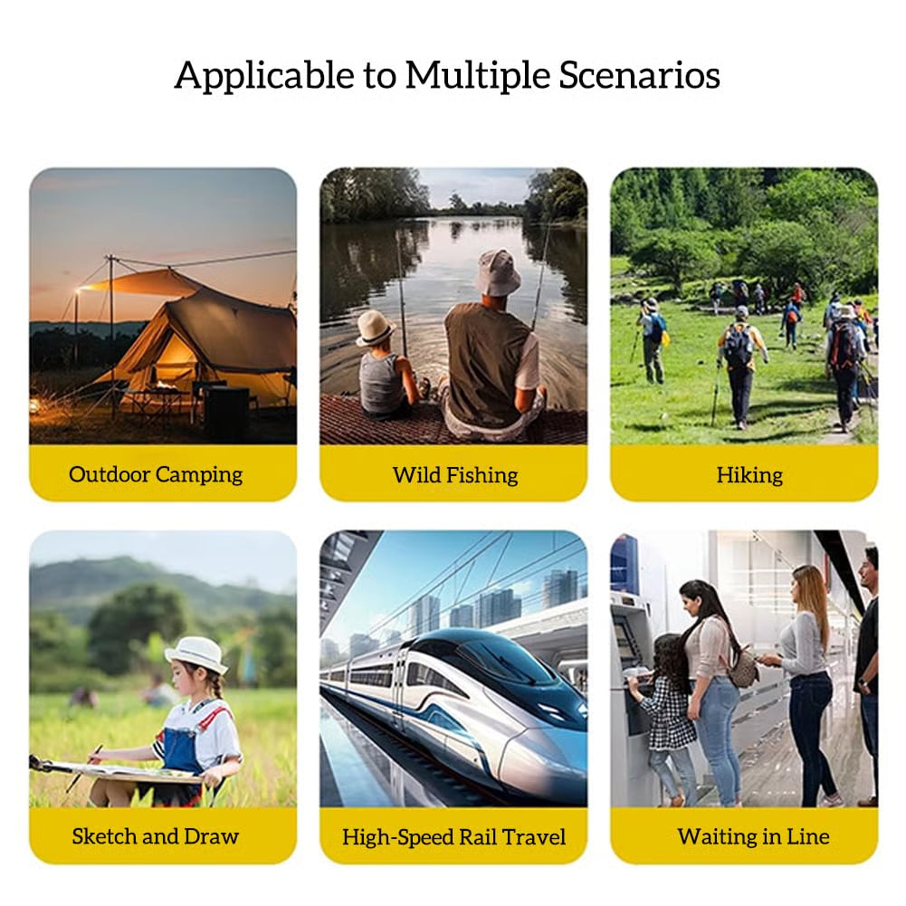 Applicable to Multiple Scenarios: Whether it is at a party, camping, hiking, fishing, or traveling, this portable folding stool can be folded into a stylish small bag, and when unfolded, it can be transformed into a comfortable seat or footstool. Small and flexible, suitable for various occasions, providing a comfortable rest experience at any time.