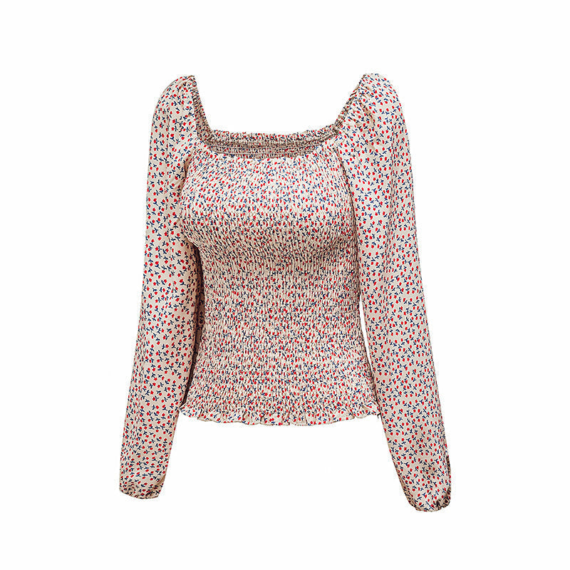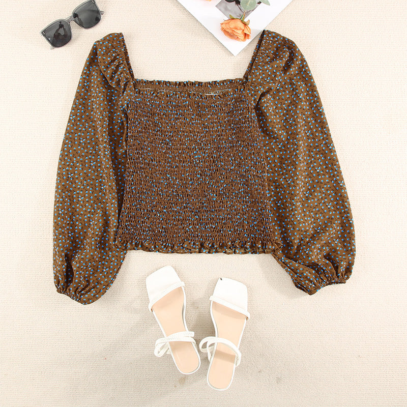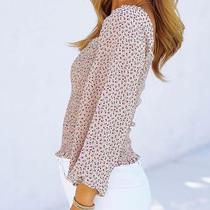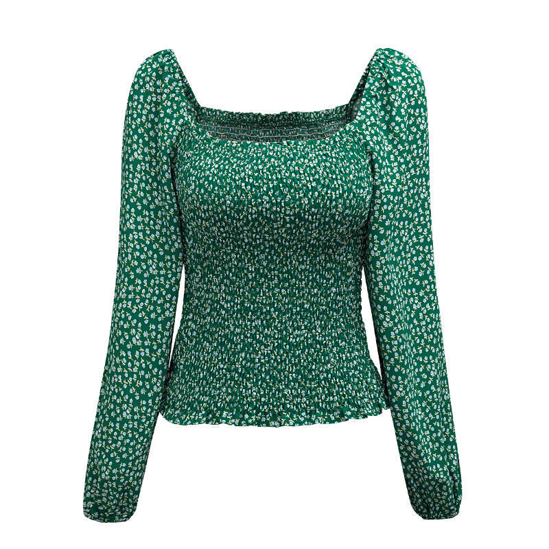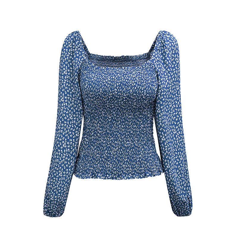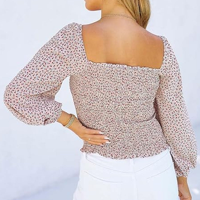 Women's Floral Print Square Neck Long Sleeve Top