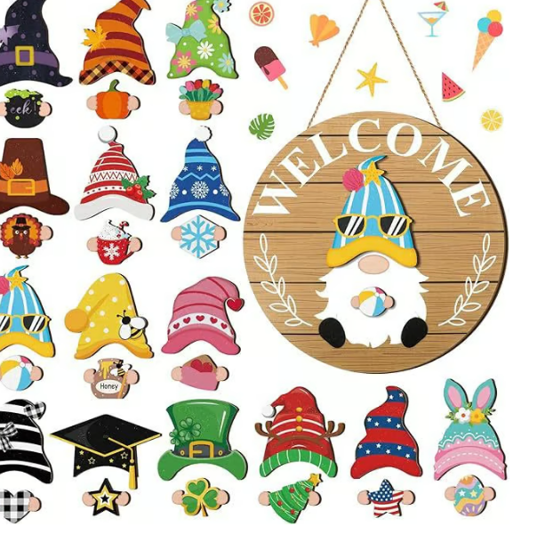 🍁🌸 Interchangeable Wooden Gnome Welcome Sign – Celebrate Every Season with Style! 🎄🌷
